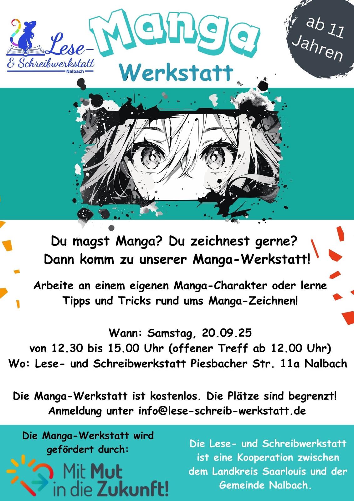 Die Manga-Werkstatt ist kostenlos. Die Plätze sind begrenzt! Anmeldung unter info@lese-schreib-werkstatt.de