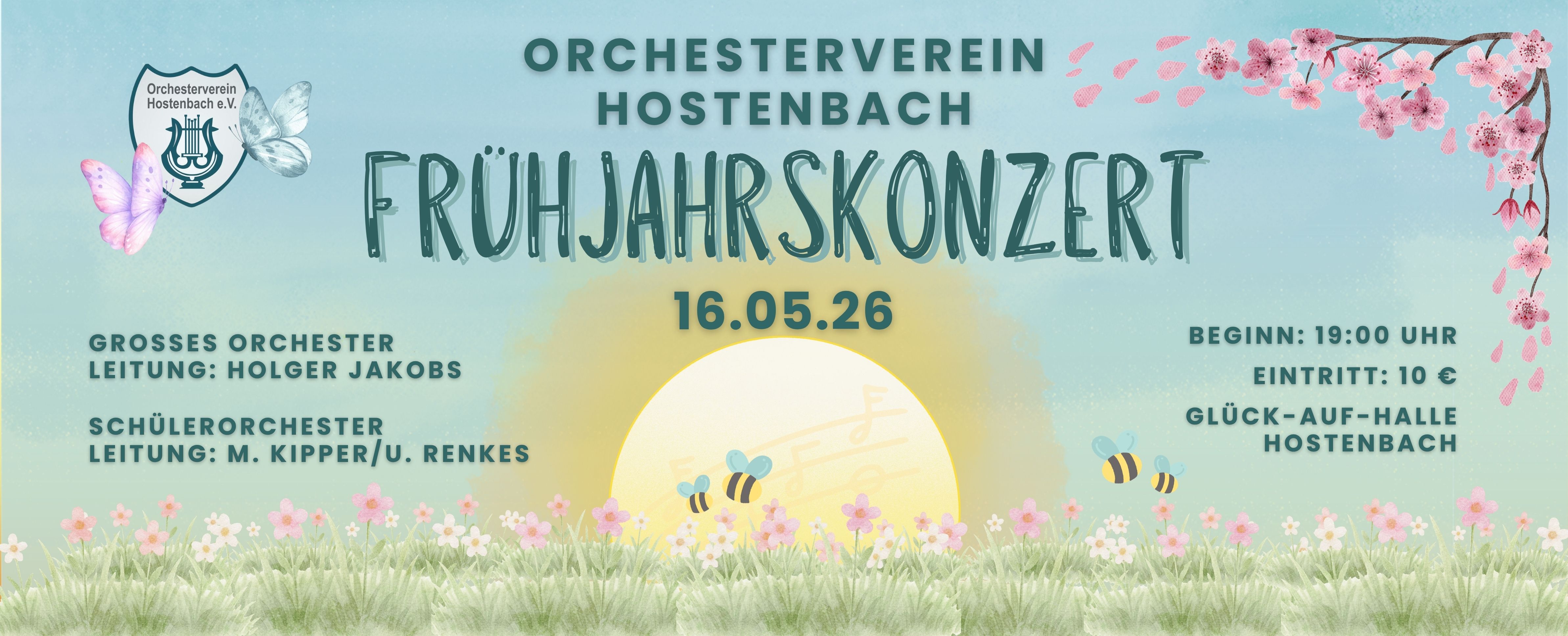 Am 16.05.2026 lädt der Orchesterverein Hostenbach zum traditionellen Frühjahrskonzert ein. Los geht es um 19:00 Uhr. Einlass 18:30 Uhr.